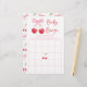 Esses cartões de Bingo adoráveis são uma ótima maneira de iniciar a diversão no seu Chá de Bebê e garantidos para ser um grande sucesso! Basta passá-los durante o Chá de Bebê, onde os convidados se divertirão preenchendo-os com presentes que acham que a futura mamãe irá receber. Os convidados então marcarão os quadrados à medida que os presentes forem abertos! O design apresenta meu laço pintado à mão com aquarela e cerejas.