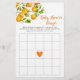Divirta-se no chá de bebê com tema little cutie com este cartão de jogo de bingo. Ilustração em aquarela da fruta laranja em uma árvore. O jogo de bingo que os convidados adivinhem quais presentes a futura mamãe irá receber. Ilustração e design originais do Namibear Art Studio.©Namibear