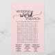 Este jogo de busca de palavras de casamento para caligrafia rosa-pincelada é perfeito para um chá de panela elegante. A frente do cartão de jogo apresenta "ele disse que ela disse" o que é um teste divertido sobre noiva e noivo. A parte de trás do cartão contém uma palavra encontrada com palavras e frases relacionadas ao casamento. A design apresenta uma fonte romântica e doce e cursiva fluindo sobre um adorável e delicado fundo rosa-balé claro. Personalize o cartão de jogo com o nome das noivas e a data do chá de panela.