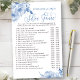 Jogo de calçado para Chá de Casamento ou Casais, personalizado com o nome da noiva e do noivo. Design floral azul-poeirento com flores de aquarela e folhagem e caligrafia elegante. O design tem 20 perguntas que você pode editar se desejar.