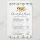 O cartão de jogo de nomes de bebês para celebridades de chás de fraldas com temas lentos apresenta uma ilustração de preguiça de cor d'água e verde-aquarela eucalipto garland e uma elegante fonte de estilo manuscrito.