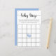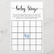 Um jogo bonito e econômico para o seu chá de bebê com "bingo de bebê" em um roteiro de na moda com baloiços e uma cor azul pastel de pés de bebê no meio do conselho.