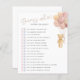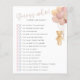 Celebre a futura mamãe com este cartão de jogo de chá de bebê 'Adivinhe Quem' moderno e simples, apresentando um desenho em aquarela de um ursinho fofo com balões corados e bege.