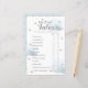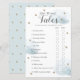 Este cartão de jogo de chá de bebê de "velhas histórias" apresenta um fundo branco com estrelas douradas falsas e nuvens azuis fofas. O verso apresenta um fundo azul bebê com padrões de estrelas douradas falsas. Respostas: 1. MENINA 2. MENINO 3. MENINA 4. MENINO 5. MENINO 6. MENINO 7. MENINO 8. MENINA 9. MENINO 10. MENINA 11. MENINA 12. MENINA Você pode encontrar produtos correspondentes na minha loja.