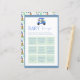 Apresentando o Jogo do Bebê Elefante Golfer, um encantador aditamento ao seu chá de fraldas. Jogue durante o chá dando a cada convidado um cartão de bingo. Mingle e faça perguntas sobre o tema do golfe. Primeiro, completar uma linha ou um bingo de cheio ganha. Aproveite um chá de fraldas cheio de diversão com uma reviravolta de golfe!