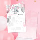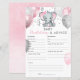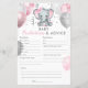 Este cartão de chá de previsão do bebê apresenta elefante rosa e cinza com balões e confete. Perfeito para os seus hóspedes brincarem.