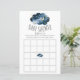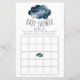 Este Jogo do Bingo da Lua e das Estrelas é perfeito para um chá de fraldas simples. A design branca moderna apresenta uma forma de nuvem de marinho azul-d-água, enfeitada com uma lua crescente amarela e estrelas dispersas.