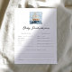 Há um bebê doce a caminho, então é hora de alguns jogos de Chá de fraldas! Aqui, o jogo Baby Predictions apresenta um veleiro a aquarela emparelhado com tipografia quic. Arte original e design por Annie Montgomery Design.