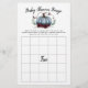 Divirta-se no seu chá de fraldas com este cartão de jogo bingo. Ilustração de uma abóbora azul com falso brilho prateado. O jogo de bingo aos hóspedes para adivinhar quais os presentes que as mamães irão receber. Ilustração original e design do Namibear Art Studio. ©BELGA_REDE