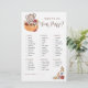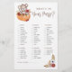 Este cartão de jogo de chá de fraldas é O que há na sua bolsa? A design apresenta um design de queda de aquarela branca com um ursinho giro sentado sobre uma abóbora e flores burgundy e folhagem. Personalize com seu texto. Outros itens de chá de fraldas correspondentes também estão disponíveis. Visualize a página de coleta ou visite nossa loja para exibir o intervalo de cheios.