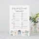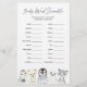Os animais árcticos com o tema "chá de fraldas word scramble card" apresenta uma ilustração com cor d'água de animais de inverno e uma cor d'água verde eucalyptus garland e uma elegante letra de estilo manuscrito.