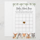O cartão de jogo do chá de fraldas bingo de animais da floresta tem o tema " bingo", ilustrando a cor d'água e a cor d'água verde eucalipto garland e uma elegante letra de estilo manuscrito.