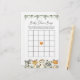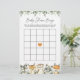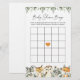 O pequeno cartão de jogo de bingo de chá de fraldas do tipo Woodland apresenta uma ilustração de animais de madeira de cor d'água e verde-aquarela eucalipto garland e uma elegante letra de estilo manuscrito.