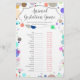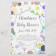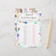 Este cartão de jogo de chá de fraldas apresenta uma fonte moderna de escrita em fundo multicolor de pontos, perfeita para um bebê, uma menina ou uma surpresa! Use este cartão para sua festa de revelação de gênero! O lado de trás está com as respostas.