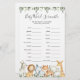 Os animais Safari têm o mesmo tema que o cartão de chá de fraldas com palavras gravadas apresenta uma ilustração de animais safari com cores aquáticas e verde-aquarelas eucalyptus garland e uma elegante fonte de estilo manuscrito.