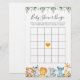O cartão de jogo bingo de chá de fraldas com tema "selva" apresenta uma ilustração de safari/animais da selva com cores aquáticas e verde-aquarela eucalipto garland e uma elegante letra de estilo manuscrito.