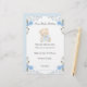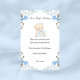 Este cartão de jogo de chá de fraldas é adequado para qualquer jogo/atividade de adivinhação. O design inclui um ursinho de cor d'água com arco azul e uma borda floral.