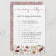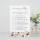 Jogo de Chá de fraldas de Flor Selvagem Rosa. Deixe seus convidados testarem sua intuição com esta Mamãe ou Jogo do Pai, uma forma divertida e interativa de celebrar os futuros pais. O rodado rosa cor-de-rosa empoeirado na frente apresenta perguntas lúdicas para os hóspedes adivinharem quem é mais provável fazer o que quando o bebê chega. O verso apresenta um padrão coordenado de borboletas-de-vô, flores silvestres-vintage, gramíneas secas e folhagem verde-salva macia sobre um fundo cor-de-rosa-rosa poeirento, garantindo um na moda e um aspecto polido. As matizes quentes e úmidas de castanho, ferrugem, terracota, laranja queimada e verde-salgada fazem deste jogo um ajustado perfeito para qualquer primavera, verão, outono ou chá de fraldas de inverno. Traga risos e alegria para o seu evento com um jogo tão memorável quanto o próprio dia!
