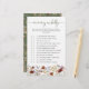 Jogo de Chá de fraldas de Flor Selvagem Verde. Deixe seus convidados testarem sua intuição com esta Mamãe ou Jogo do Pai, uma forma divertida e interativa de celebrar os futuros pais. O guião verde sábio na frente apresenta perguntas lúdicas para os hóspedes adivinharem quem fará o que quando o bebê chegar. O verso apresenta um padrão coordenado de borboletas de vassoura, flores silvestres, gramíneas secas e folhagem verde de sábio em um fundo verde de sábio, garantindo um na moda e um aspecto polido. As matizes quentes e úmidas de castanho, ferrugem, terracota, laranja queimada e verde-salgada fazem deste jogo um ajustado perfeito para qualquer primavera, verão, outono ou chá de fraldas de inverno. Traga risos e alegria para o seu evento com um jogo tão memorável quanto o dia!