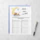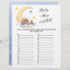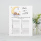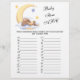 Jogue qual é o objetivo das crianças que começa com cada letra? PEGUE O MELHOR VENCIMENTO! Jogo de chá de fraldas com um belo coelho dormindo na lua.