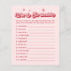 Um encantador acréscimo aos temas do seu chá de fraldas de inverno. Perfeito por incorporar às ideias do chá de fraldas de Natal, este jogo adiciona uma reviravolta festiva com um tema do chá de fraldas do bebê do Papai noel. Ideal para as ideias do chá de fraldas de dezembro, pode ser personalizado para um chá de fraldas de Natal cor-de-rosa, celebrando a chegada de uma menina. Elevem a sua coleção de jogos de Chá de fraldas com esta atividade divertida e envolvente que os hóspedes irão amar!