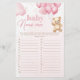 Os itens correspondentes estão disponíveis no jogo de chá de fraldas de corrida de nomes de bebês de ursinho cor-de-rosa.