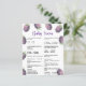 Cartão de convite para chás de fraldas em forma de grão com ilustração aquosa das amoras. O texto diz "um bebê doce de fruta está a caminho." Itens correspondentes disponíveis. CHAVE DE RESPOSTA: 1.d 2.d. 3.a 4.c 5.c. 6.a. 7.b 8.c.