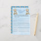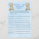 Nosso "Jogo de Chá de fraldas do Bear do Bear Personalizado Deseja Rapazes" - uma atividade alarmante e interativa que adiciona um toque de personalização à celebração do seu chá de fraldas. Este jogo foi projetado para criar uma bela coleção de desejos e conselhos para a futura mãe, fazer que seja uma parte significativa e memorável do seu chá de fraldas. Tema do Urso Adorável: Mergulhe seu chá de fraldas num mundo de beleza com nosso tema do Urso de Meninos. A ilustração encantadora de elefantes acrescenta um toque lúdico e carinhoso ao jogo, definindo o tom perfeito para uma celebração alegre e sincera.