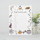 Há um bebê doce a caminho, então é hora de alguns jogos de Chá de fraldas! Aqui, o jogo Baby Word Scramble tem os convidados decodificando 15 itens de bebês. A design apresenta ilustrações desenhadas à mão de ícones clássicos do Dia das Bruxas, como abóboras, bruxas, fantasmas e doces! Arte original e design por Annie Montgomery Design.