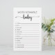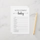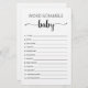 Adquira este jogo e desfrute de um cartão de bebê do Word Scramble de alta qualidade para o seu evento! Design de preto e branco neutro em gêneros. RESPOSTAS: 1 FRASCO, 2 WIPES, 3 ALTAS CADEIRAS, 4 EMBALAGENS, 5 FRALDAS, 6-ASPIRATOR, 7-ONESIES, 8-BEBÊ LOTION, 9-BOOTIES, 10-BLANKET, 11-BREASTEADING, 12-MOTHERHOOD