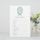 Este jogo de Chá de fraldas de palavra "scramble" apresenta um pato de borracha amarelo desenhado manualmente emoldurado em uma fita azul macia amarrada em um arco na parte inferior. CHAVE: 1. BIB 2. CADEIRA DE ROCHING 3. BASSINET 4. UM SIE 5. CRADLE 6. FRASCO 7. MÓVEL 8. TEDDY BEAR 9 HEMIA DE ENFERMEIRO 10. MONITOR 11. JUNTOS 12. EMBALAGEM 13. REPRODUZIR CANETA 14. LULLABYE 15. FRALDA BAG