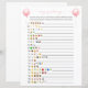 Este jogo emoji de chá de fraldas é perfeito para um chá de fraldas ou um bebê aspersor. Este jogo apresenta um balão cor-de-água rosa na frente e atrás. Os vossos hóspedes podem resolver os nomes dos livros infantis e das rimas de infantários descodificando os emoticons. CHAVE DE RESPOSTA: 1. Cinco Pequenos Macacos Pulando Na Cama 2. Twinkle Twinkle Pequena Estrela 3. Itsy Bitsy Spider 4. Peixe Arco-Íris 5. A Tão Faminta Lagarta 6. O Leão, A Bruxa e o Guarda-roupa 7. Dickory Dock 8. Eu espio 9. Ovos Verdes e Pressão 10. Winnie The Pooh 11. A Web 12 da Charlotte. Alice no País das Maravilhas 13. Se Dar A Um Rato Um Cookie 14. Diddle Diddle 15. Havia uma velha mulher 16. Um Peixe, Dois Peixes, Peixe Vermelho, Peixe Azul 17. Onde As Coisas Selvagens São 18. Cachinhos dourados e os Três Ursos 19. Os Três Pequenos Porcos 20. O velho MacDonald tinha uma Fazenda. Você pode personalizar este design clicando em "Personalizar este modelo" ou se quiser alterar a fonte, as cores ou organizar os elementos design de uma forma diferente, você pode clicar em "Editar usando a Ferramenta Design".