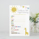 Nomeie o título de cada livro infantil! Esta girafa engraçada coordena o jogo com a Coleção de Chás de fraldas de Leão Dourado e Cinza. Aqui está a chave da resposta: Ovos Verdes & Ham Boa Noite Lua Três Pequenos Porcos O Gato no Peixe Arco-Íris O Tartaruga e o Urso Marrom Lebre, Urso Marrom, O Que Vocês Veem? Um Peixe, Dois Peixes, Peixes Vermelhos, Moo Azul, Baa, La la, O Caçador Faminto Horton ouve um Quem! 5 macacos pulando na cama