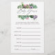Trendy suculenta chá de fraldas adivinhando cartões de jogo com moldura geométrica dourada e lavagem verde-aquática inversa.