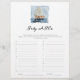 Há um bebê doce a caminho, então é hora de alguns jogos de Chá de fraldas! Aqui, o jogo Baby ABCs tem os convidados listando quantos itens de bebês que começam com as letras do alfabeto em três minutos. A design apresenta um veleiro a aquarela emparelhado com tipografia quic. Arte original e design por Annie Montgomery Design.
