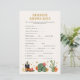 Jogo do Chá de fraldas Ocidental. Transforme seu chá de fraldas em uma celebração divertida com o jogo Nursery Rhyme, combinando diversão e estilo sem interrupções. A parte traseira de cada placa apresenta um padrão correspondente que ecoa a Coleção de Chás de fraldas do Western Boho Chic, garantindo que seu evento seja tão coeso quanto entretido. Cada elemento é projetado para complementar o tema, trazendo o espírito do deserto para a sua reunião. Deixe o jogo se tornar mais do que apenas uma atividade — faça dele uma parte memorável da experiência de seus hóspedes, embrulhando-os no encanto único de sua celebração cuidadosamente organizada. Convide seus convidados a entrar na história que você criou, onde cada detalhe fala de planejamento ponderado e estilo sem esforço.