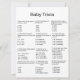 Jogo divertido de bebê triviais Resposta: 1 D. 2 A. 3 C. 4 C. 5 A. 6 B.7 B. 8 A 9 A. 10 A. 11 A. 12 B
