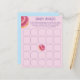 Jogo branco rosa/azul Baby Bingo apresentando uma rosquinha rosa em aquarela. É muito fácil personalizar, com seus detalhes pessoais.