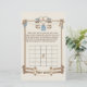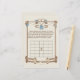 Envolva seus hóspedes e adicione um elemento divertido e interativo ao seu chá de fraldas com este adorável Cartão de Jogo de Previsão de Presente do Baby Bingo! Esta design encantadora é perfeita para uma celebração rústica, ocidental ou temática de cowboy/cowboy. A fronteira apresenta uma cerca de madeira e uma linha de roupa pendurada com doces artigos de bebês de templo ocidental, incluindo: Denim dungarees (macacões) Botas de vaqueiro Um ursinho clássico de pelúcia com cavalos de galinha Rocking As instruções são simples: Antes de os presentes serem abertos, os convidados enchem cada praça com um presente que pensam que a mãe vai receber. À medida que os presentes são abertos, eles marcam seus palpites corretos. O primeiro a receber cinco em seguida ganha um prêmio! Detalhes: Ocidental, Russo, Fazenda, Cowboy, Cowgirl Colors: Neutral, beige, castanho, azul claro, denim A charmosa design de manutenção para qualquer futuro pai.