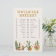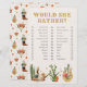 Jogo de Chá de Noiva Boho Western. Comece as risadas com este jogo de Chá de Noiva "Ela Preferiria", projetado com uma energia de vaqueira divertida e ilustrado com detalhes em aquarela, como botas, chapéus e flores do deserto. Os neutros terrosos, rosa, laranja e os acentos de ouro e preto luxuosos sobressaem-se contra um padrão Western coordenado no verso. É a maneira perfeita de quebrar o gelo e celebrar a personalidade da noiva. Prepare-se para algumas risadas - este é um dos favoritos dos convidados!