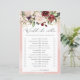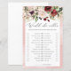 Jogo 'Would she Rather' Floral Rosa e Borgonha com sutil realce de brilho dourado e fundo de aquarela rosa - estilo boho perfeito