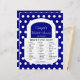 Os jogos de mala fazem uma maneira divertida de os chás se conhecerem e começarem a rir! Este jogo de chá de panela com bolsa é perfeito para um chá azul marinho, pois apresenta o marinho azul e branco como o tema da cor. O nome da noiva e a data do chá aparecem com destaque na design para fazer um jogo de festas personalizado apenas para a sua festa do chá de panela. Direitos autorais