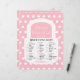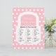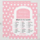 Procurando um jogo de chá de panela de bolsa que não seja como todos os outros? Bem, este é para você! Este jogo de chá de panela de bolsa apresenta um design de bolsa como o conselho do jogo. A bolsa tem as palavras "O que está na sua bolsa?" nela e os participantes do chá de panela podem verificar o que está na sua bolsa e somar os pontos totais — todos dentro na bolsa. A bolsa branca aparece sobre um fundo de bolinhas rosa e branco. Você pode até personalizar o design com o nome da noiva e a data do chá de panela. Esta é uma reviravolta divertida para o jogo do chá de panela! Direitos autorais