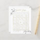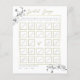Ramificações de orquídeas brancas, desenhadas à mão em lápis de grafite, decoram este simples e elegante cartão de jogo de bingo de chá de panela personalizado que apresenta uma delicada e clássica estrutura de ouro e caligrafia moderna. Personalize-o completamente, com o nome da noiva e a data. Você pode até mudar cada um dos presentes, para a experiência perfeita e personalizada do chá de panela, personalizada apenas para você.