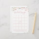 Entretenham seus convidados com este divertido jogo de bingo de chá de panela, apresenta elegante e delicado aspecto da água, flor selvagem e roteiro moderno de na moda, paletas de pastel de cor rosa pincelada, branco, bege, azul poeirento e verde botânico, simples e romântico. excelente para a festa do país rústico, chá de panela de boho moderno, festas de casamento de jardim botânico em primavera e verão. Veja todos os jogos de chá de panela na coleção.