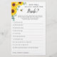 Este cartão de jogo de chá de panela é Como você conhece a Noiva? Tem 10 perguntas para os jogadores responderem. O design apresenta design floral de aquarela com girassóis, folhas de eucalipto, abelhas e favos de mel. Personalize a parte de trás das cartas com o nome da noiva. Produtos correspondentes disponíveis.