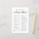 Adicione este jogo divertido e divertido de "Tradições de Casamento" ao seu evento. Ele apresenta uma escrita branca preta, tipografia clássica, fundo rosa-claro. Você pode personalizar a parte traseira deste cartão de jogo de chá de panela. Este cartão de jogo é perfeito para qualquer tema e estação do chá de panela.