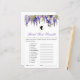 Um jogo de chá de panela para o chá de panela temático Regência de um fã da série Bridgerton. Ela tem uma coloração aquosa de wisteria roxa na borda superior. Sob ele e acima do texto, há o retrato de uma senhora como silhueta de perfil, em um oval. O título é escrito numa caligrafia elegante, em roxo. Há 12 palavras embaralhadas, tanto palavras comuns como nomes (primeiros), todas relacionadas a Bridgeron, mas, exceto o nome da série, não exclusivo de Bridgerton, para que os convidados desconhecidos tenham chances de desembaraçá-las. Todo texto é editável, portanto você pode substituí-lo por (ou adicioná-lo) outras palavras embaralhadas, se desejar. Respostas corretas: 1. MONDIAD - diamante 2. HENPAD - Daphne 3. NOSSEA - estação 4. ELOPPEEN - Penélope 5. DIGROBRENT - Bridgerton 6. SELFLAWS - sem falhas 7. TROLTEACH - Charlotte 8. TIERWAIS - wisteria 9. Anthony 10. NEQUE - rainha 11. Monis - Simon 12. KEUD - Duque