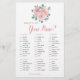 Este cartão de jogo de chá de panela é O que há na sua bolsa? A design apresenta flores rosa poeirentas e folhas de eucalipto, de cor aquosa. Personalize a parte de trás das cartas com o nome da noiva. Produtos correspondentes disponíveis.