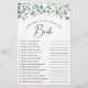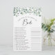 Chá de panela "como você conhece bem a noiva", com elegante sábio verde eucalipto verde-verde-água e "noiva" em um roteiro de na moda. Personalize as perguntas e adicione o nome da noiva e a data do chá no verso.